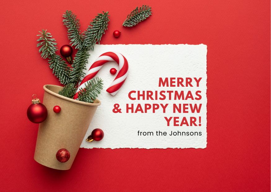 Give your greetings a personal touch and make every wish count this holiday season with this timeless Christmas and New Year card that everyone will love to receive.