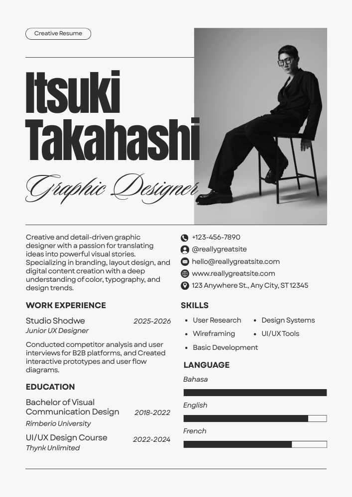 Perfect for creative professionals who value simplicity and professionalism, the Monochrome Modern Graphic Designer Resume A4 combines style with functionality. It’s ideal for freelancers, designers, and students who want to impress recruiters or clients with a visually appealing, easy-to-read resume.