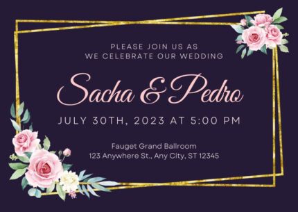 Dark Purple Pink And Gold Floral Wedding Invitation Card | Editable Canva Template | Elegant Wedding & Anniversary Card