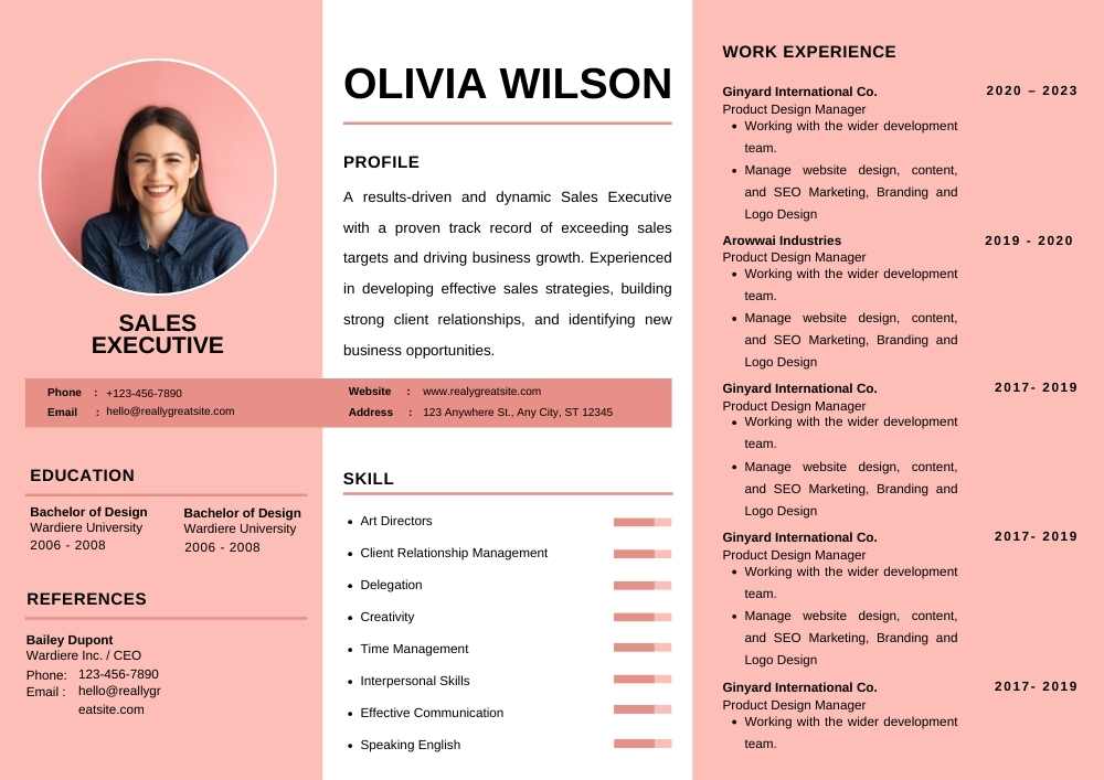 Achieve an eye-catching and polished first impression with this Pink White Modern Sales Executive Resume – Editable CV Template, designed to help you present your sales achievements with clarity and confidence. This pink white modern sales executive resume blends soft pink tones with crisp white space, creating a refreshing aesthetic perfect for sales professionals who want to look approachable, organized, and modern. Whether you’re applying for a Sales Executive, Account Manager, Business Development Associate, Sales Coordinator, or Retail Management role, this template supports a polished and persuasive presentation.