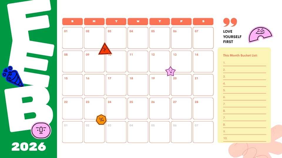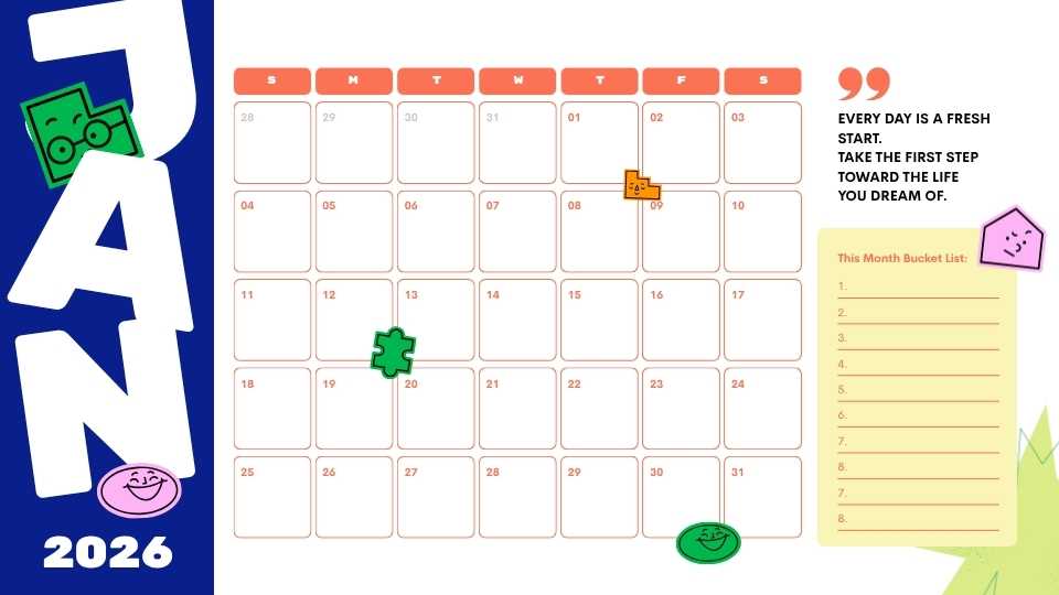 Its playful yet structured design makes it great for classrooms, home organization, planners, binders, and kids’ spaces. If you want a calendar that brings brightness and clarity to your entire year, this Playful 2026 Monthly Calendar offers the perfect mix of creativity, color, and function to help keep your days joyful and well-planned.